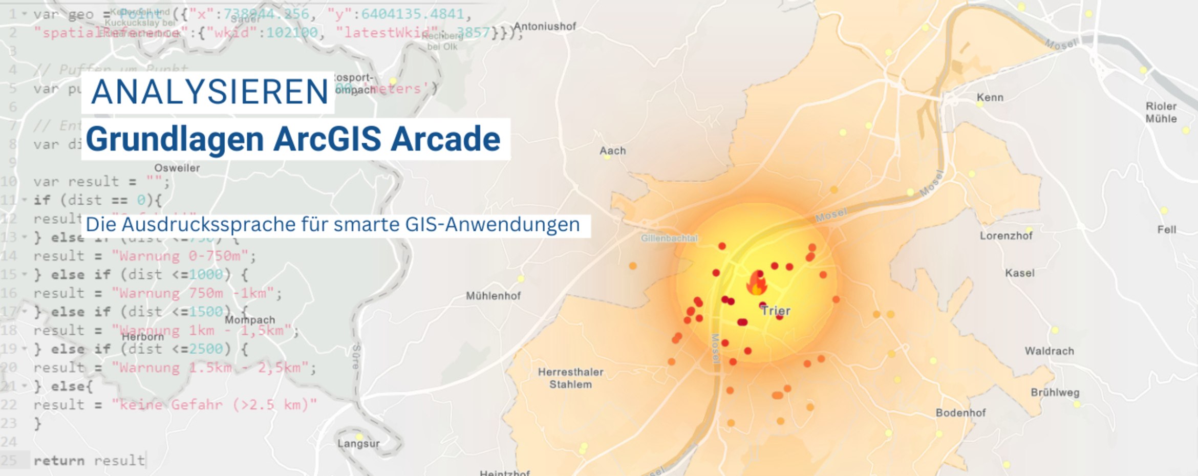 ArcGIS Arcade ist eine flexible Ausdruckssprache, die es ermöglicht, Daten in Echtzeit innerhalb der ArcGIS-Plattform zu verarbeiten. Dieser Kurs vermittelt die Grundlagen von Arcade und zeigt, wie Sie damit Beschriftungen, Visualisierungen und Attributregeln in ArcGIS Pro erstellen sowie Analysen, Berechnungen und Pop-ups in ArcGIS Online gestalten können. Zudem werden die Einsatzmöglichkeiten von Arcade in Dashboards erläutert.