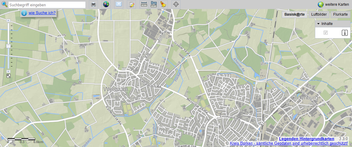 Kreis Borken hat mithilfe von atlasFX einen umfassenden Geodatenatlas realisiert. Neben einer Übersichtskarte stehen dem Nutzer zahlreiche thematisch gegliederte Einzelkarten zur Verfügung.
