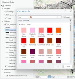 Mit ArcGIS Pro ist eine Suche nach Farben und Farbverläufen möglich.
