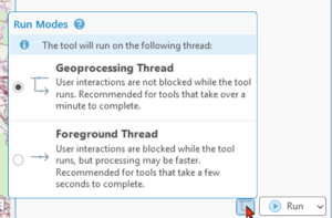 Führen Sie Geoverarbeitungswerkzeuge entweder auf dem Geoverarbeitungs-Thread oder im Vordergrund-Thread aus. Damit können Sie die Performance Ihrer Werkzeuge weiter steigern.
